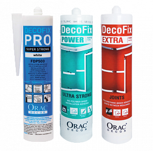 | ![]() | Монтажный полимерный клей и наполнитель для наружного применения, в помещениях с повышенной влажностью, непористых поверхностей (плитка, стекло, …) вместо DecoFix Pro - DecoFix Power*:
